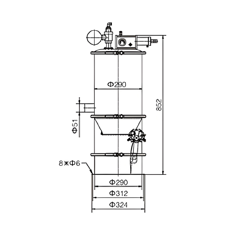 | QVC-2 | 6L | 100-700kg/h | 0.4-0.6Mpa | 360NL/min | φ213*628mm |